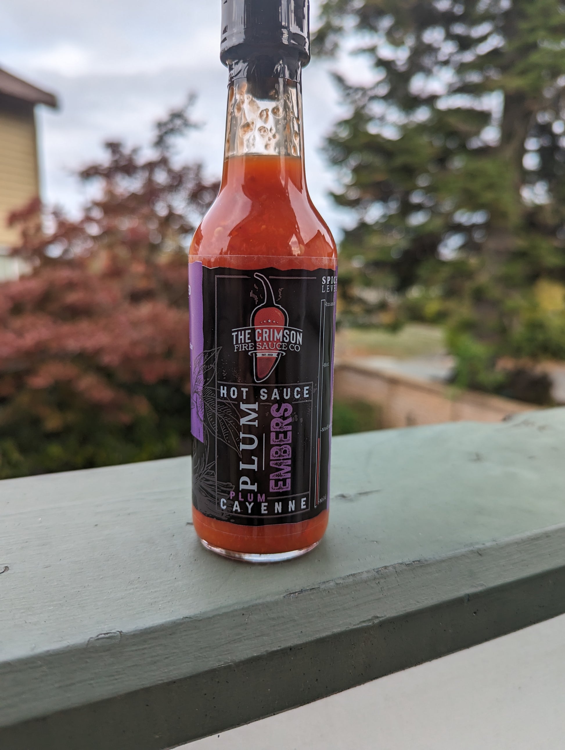 A blend of plum, ginger and cayenne pepper! Very tasty with a nice amount of heat.